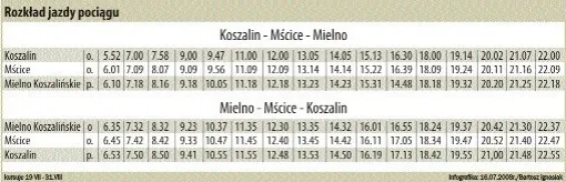 - W sezonie letnim kursują specjalne pociągi, które mogą znacznie skrócić czas podróży do Mielna.